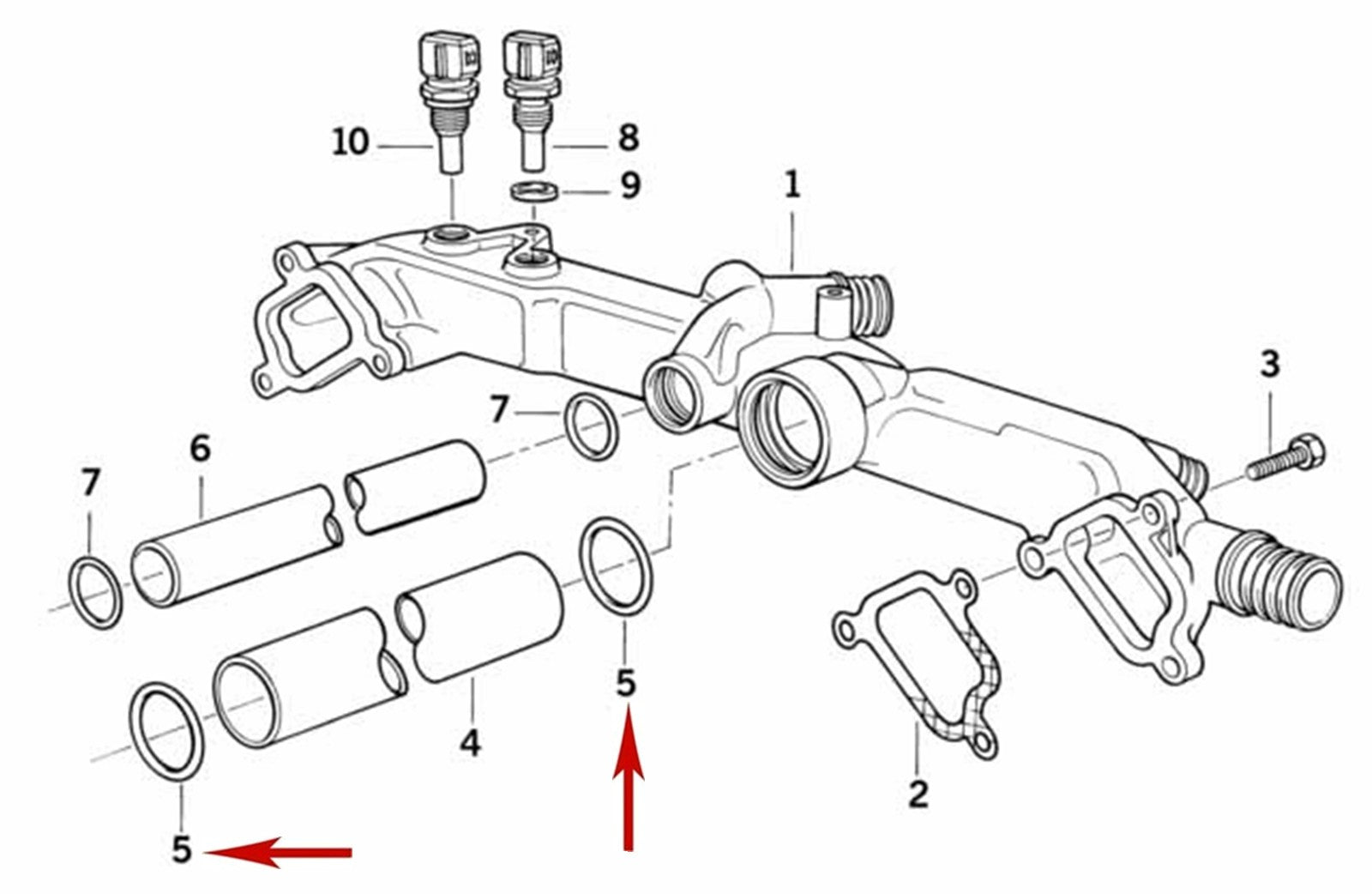 2 - German Made CRP Water Pipe / Water Manifold / Accumulator 34.2mm X 4.0mm O-Rings, 11 53 1 710 048