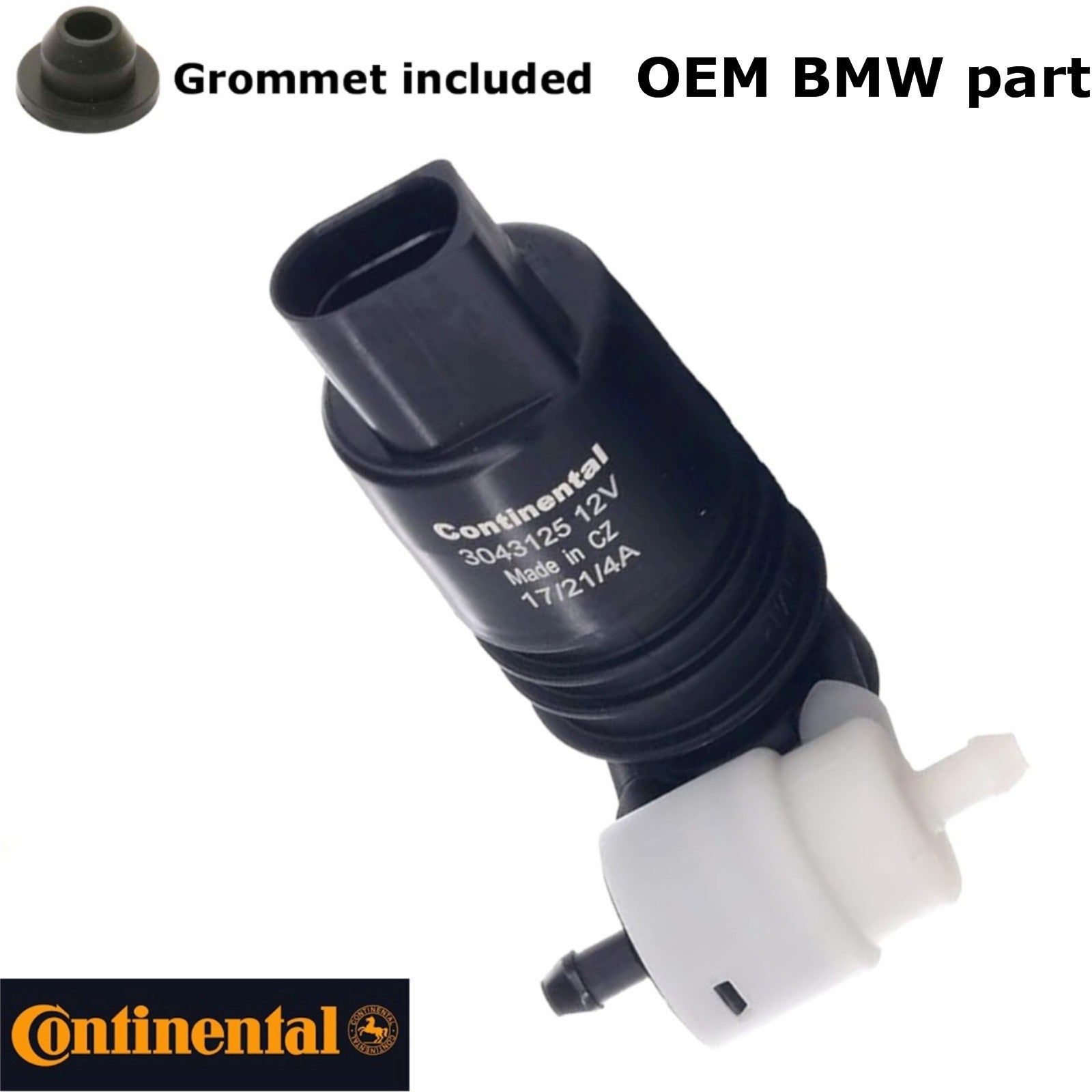 BMW OEM Continental Double Windshield Washer Pump with Grommet for 1997 - 2021 BMW i3, 318ti & Z3 and 2007 - 2013 Mini Models, 67 12 8 377 987