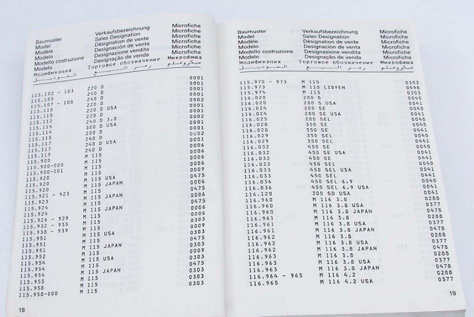 1960 on Mercedes Model Index for Cars, Trucks and Commercial Models USA, European and Worldwide