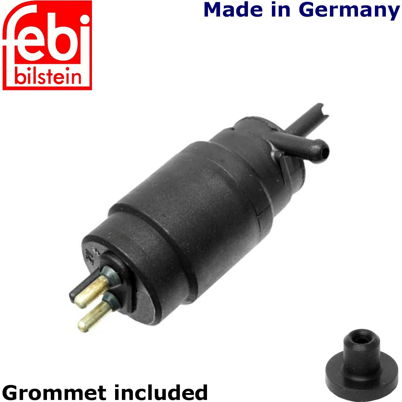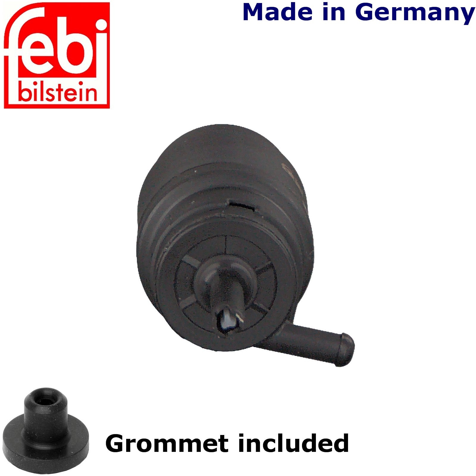 This pump is made in Germany, by Febi Bilstein of Germany, and includes a new rubber grommet.